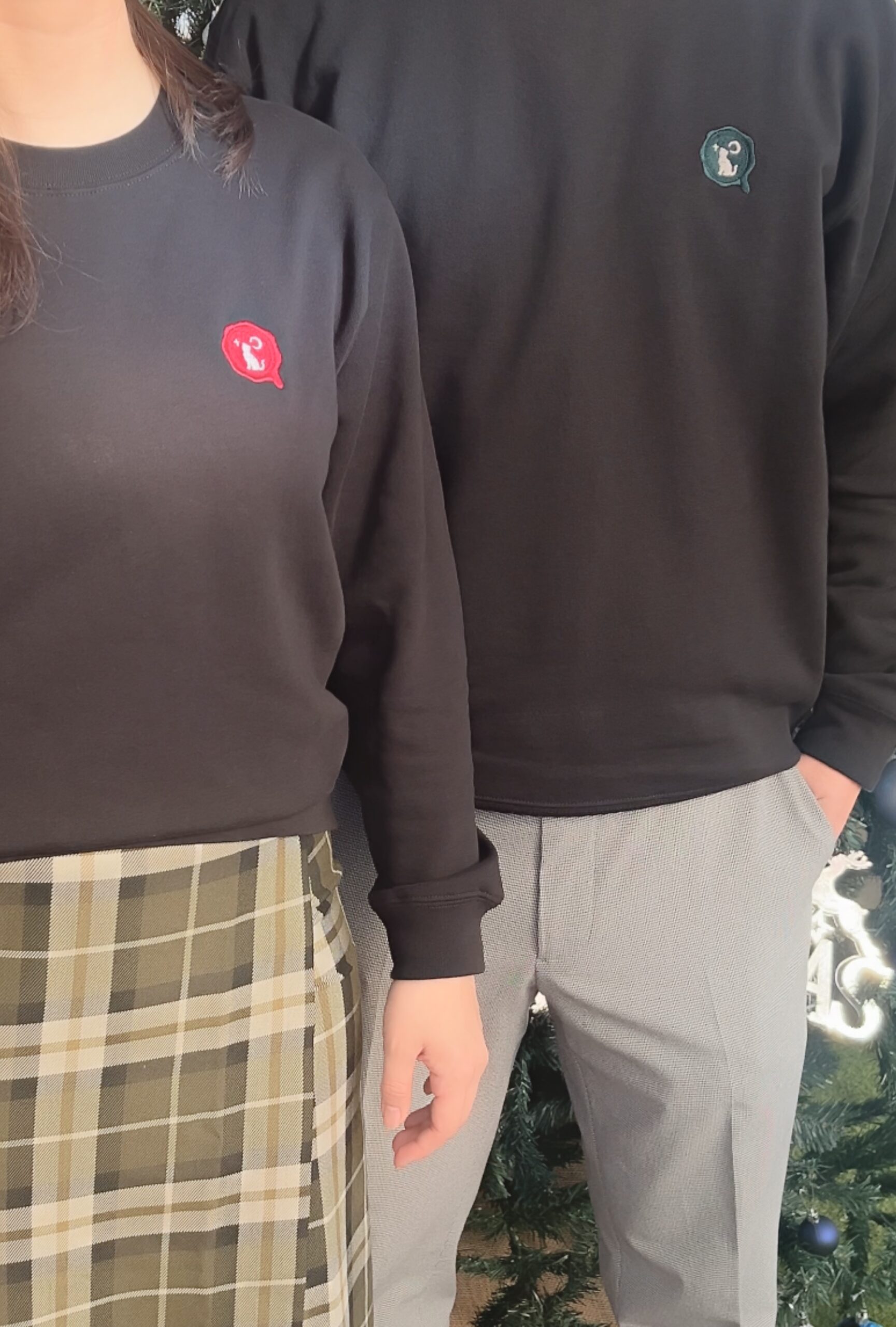 本体カラーはブラックのみ。赤色のスタンプもグリーン同様光沢があります。2枚目の写真が現物に近い光の反射をしております。