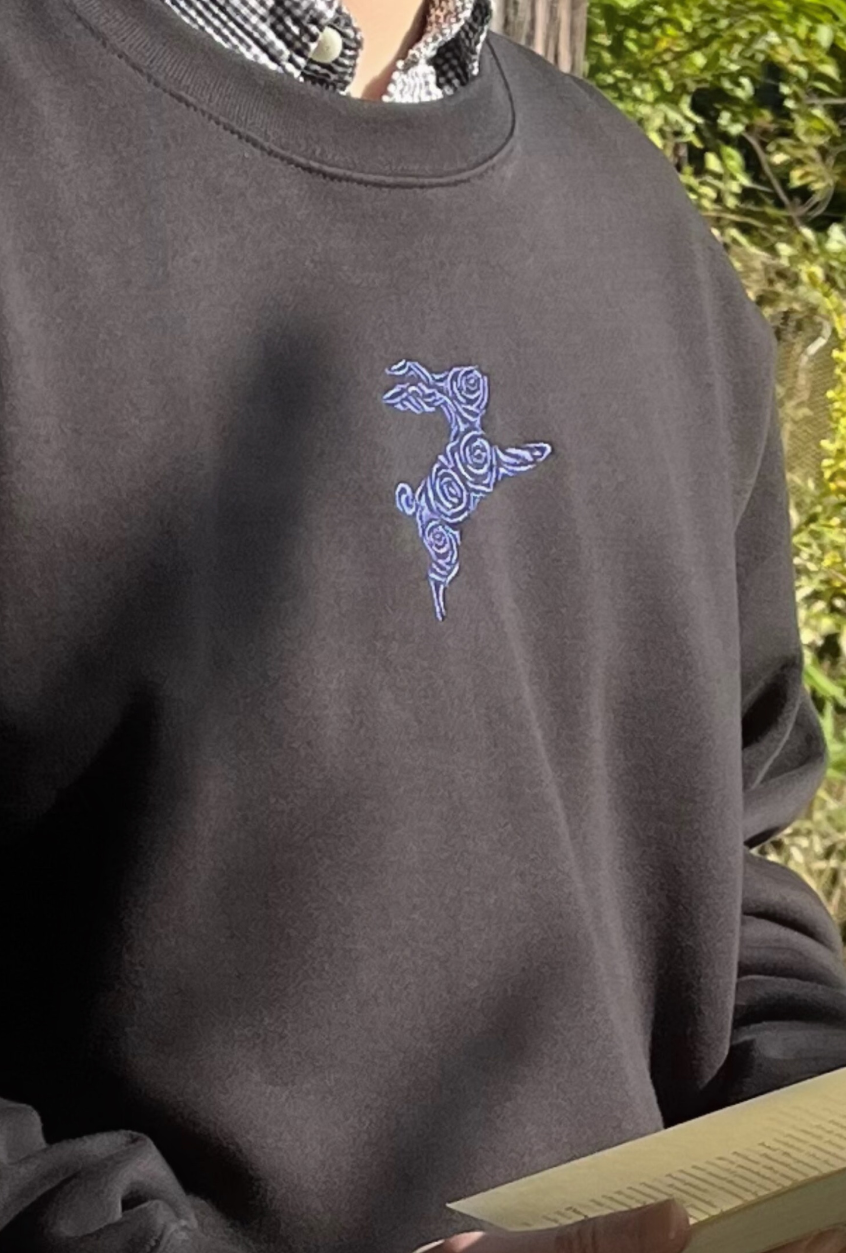 兎のシルエットを、咲き誇る薔薇で埋め尽くしたデザイン。